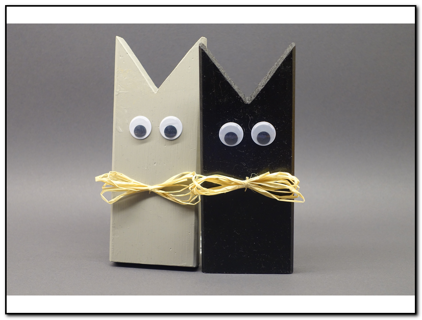 Vi har spesialisert oss på en enkel figur av en katt og små ølkasser. Begge kan lages i flere størrelser og farge etter ønske.