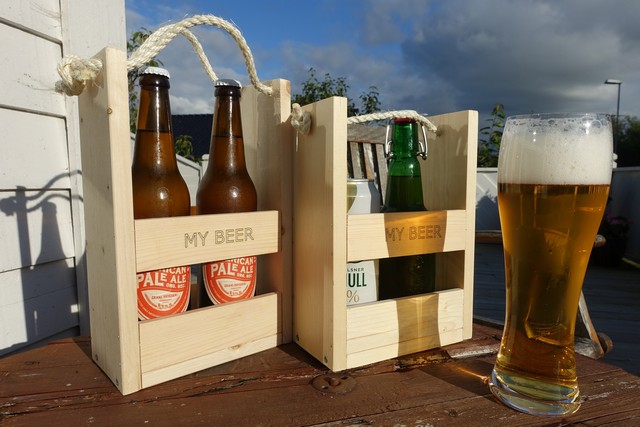 Ølkassene lages i flere varianter. I kasse 1 er det plass til 2 stk. 0,5 litere av den høye typen, mens det i kasse 2 er plass til f.eks. 2 x boks øl eller 2 x 0,33 flasker.